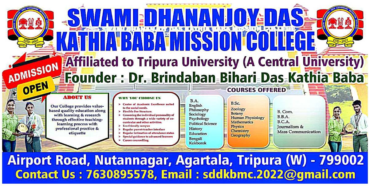 Agartala, Tripura (west) , – SWAMI DHANANJOY DAS KATHIA BABA MISSION COLLEGE, a top academic institution built around excellence in academics and leading-edge education, is proud to announce the introduction of a set of new courses designed to equip the students with the necessary skills and knowledge to compete efficiently in the job market, which is undergoing rapid changes day by day.